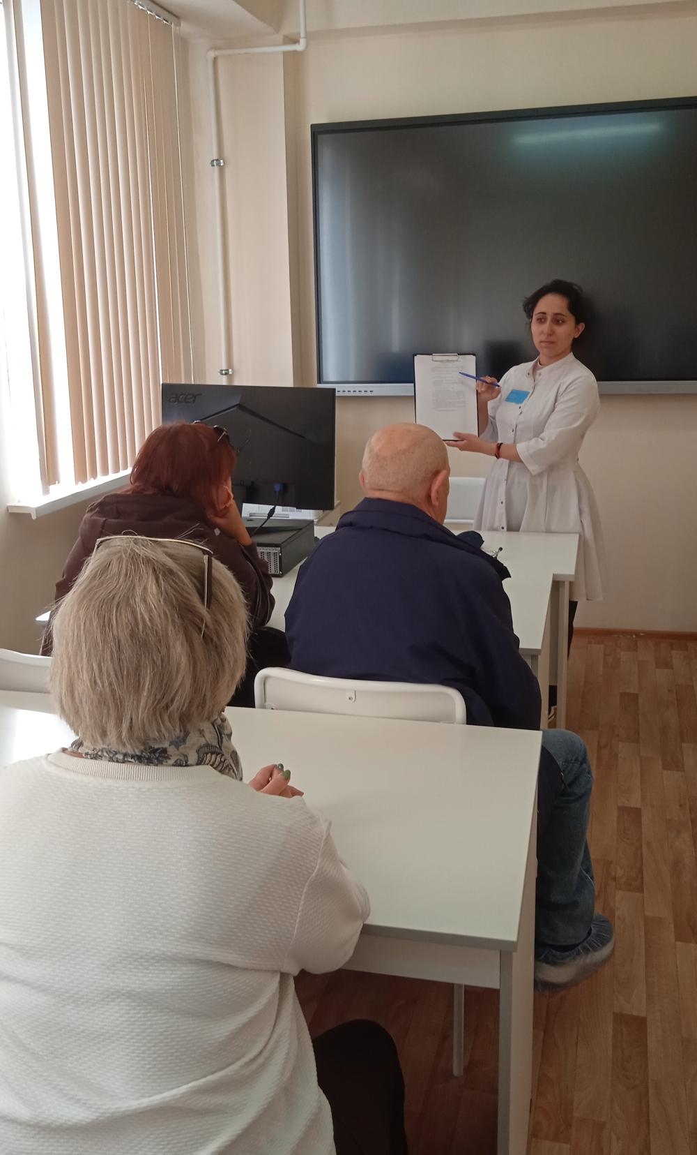 Очередное занятие было посвящено Всемирному дню сердца, который отмечается 29 сентября, и прошло в рамках недели ответственного отношения к сердцу и профилактической акции «Оберегая сердца». Организация школ здоровья является неотъемлемой частью реализации нацпроекта «Продолжительная и активная жизнь». В рамках Федерального проекта «Борьба с сердечно-сосудистыми заболеваниями» проводится профилактика прогрессирования ишемической болезни сердца и развития её осложнений у пациентов, находящихся под диспансерным наблюдением. Школу здоровья для пациентов с сердечной недостаточностью ведёт врач-кардиолог Сусанна Мкртычевна Варданян.
