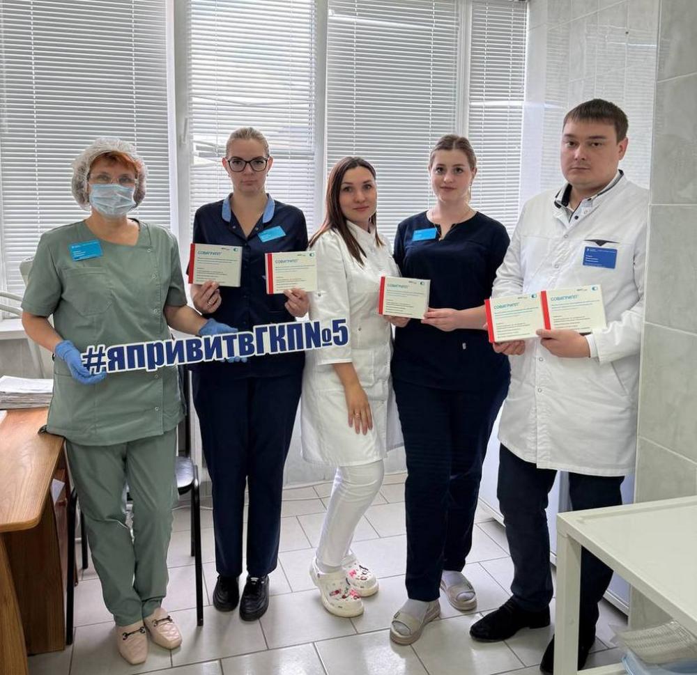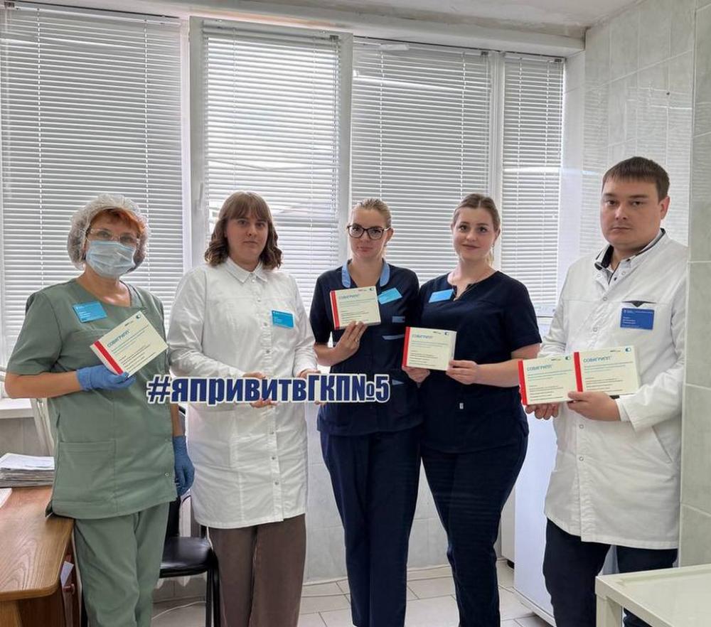 В городской клинической поликлинике № 5 г.Тамбова стартовала акция #япривитвГКП№5. В первую очередь рекомендуется привиться группам риска: пожилым, беременным женщинам, тем, кто страдает хроническими заболеваниями, представителям ряда профессий, которые наиболее часто контактируют с людьми.