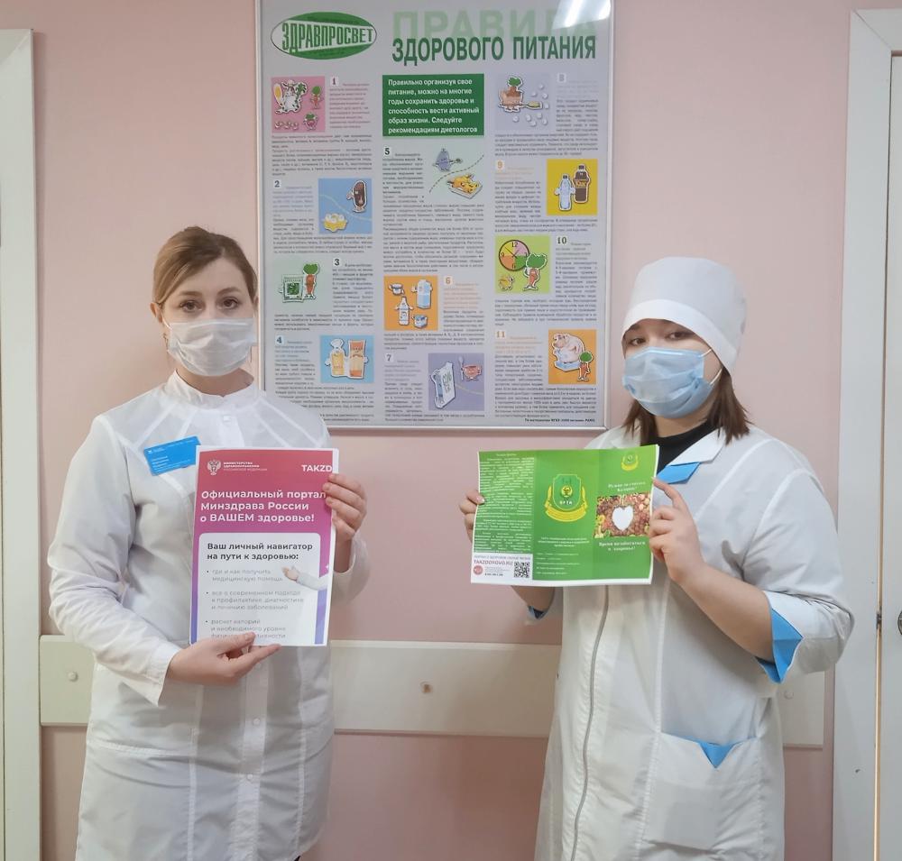 В городской клинической поликлинике №5 г.Тамбова медицинские работники совместно со студентами Тамбовского медицинского колледжа провели профилактическую акцию в рамках реализации нацпроекта «Продолжительная и активная жизнь» и недели популяризации подсчёта калорий.